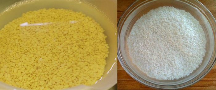 – Bước 1: Ngâm đậu xanh và gạo nếp