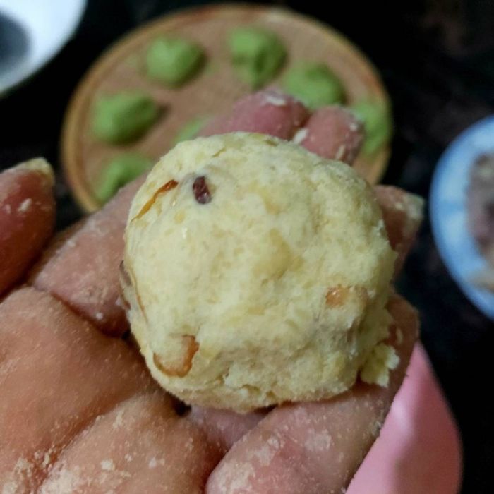 Sử dụng miếng bột để bọc kín nhân đậu.