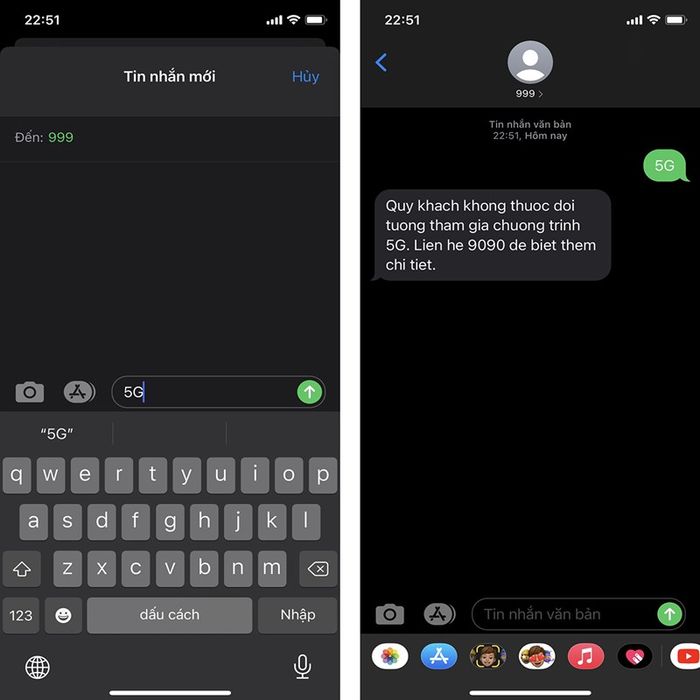 Bước 1: Gửi tin nhắn theo cú pháp 5G tới 999.
