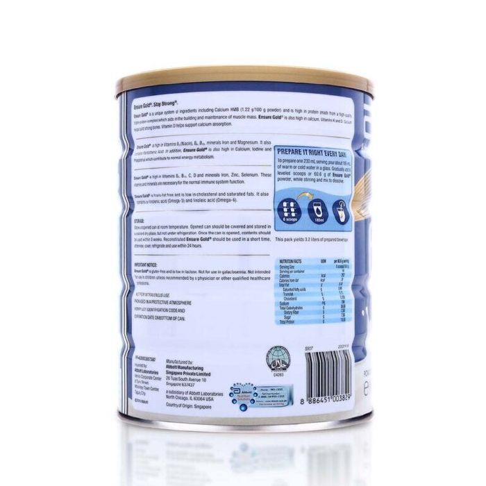 Sữa bột Ensure Gold là một loại thức uống dinh dưỡng có thể thay thế hoặc bổ sung cho bữa ăn hàng ngày của những người có chế độ ăn kém, muốn cải thiện sức khỏe, đặc biệt là những người bệnh cần phục hồi nhanh. Sản phẩm thuộc thương hiệu sữa Abbott Mỹ.
