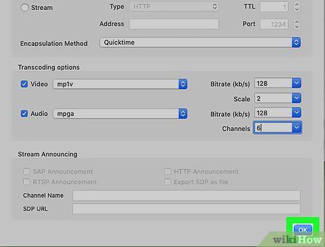 Đánh dấu vào ô 'Truyền/Lưu' (Streaming/Saving) ở góc trái dưới cửa sổ.