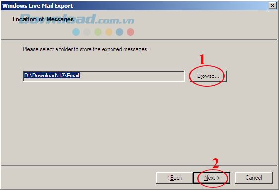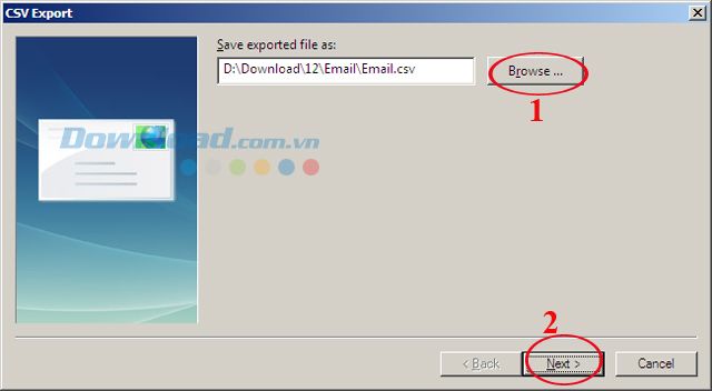 Bước 3: Bấm vào nút Browse... ở phần Save exported file as để đặt tên và địa điểm lưu trữ. Sau đó, nhấp chuột vào Next để tiếp tục.
