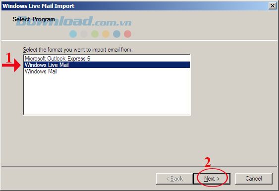 Bước 2: Tiếp theo, chọn Windows Live Mail, sau đó nhấn Next để tiếp tục.