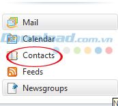 Bước 1: Trong góc dưới bên trái của cửa sổ Windows Live Mail, chọn Contacts.