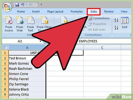 Mở thẻ Dữ liệu. Bấm vào thẻ Dữ liệu ở trên cùng của màn hình để xem các tùy chọn về dữ liệu trong thanh ruy-băng trên bảng tính.
