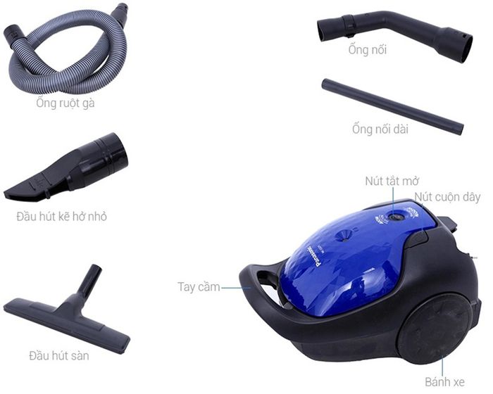 Chung quy, các loại máy hút bụi Panasonic đều có thiết kế tương đồng, với những thành phần cơ bản sau: