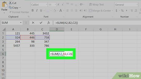 =SUM(A3+B3)) để cộng giá trị của hai ô hoặc gõ =SUM(ô, ô, ô) (ví dụ:=SUM(A2,B2,C2)) để cộng giá trị của một loạt ô với nhau. -