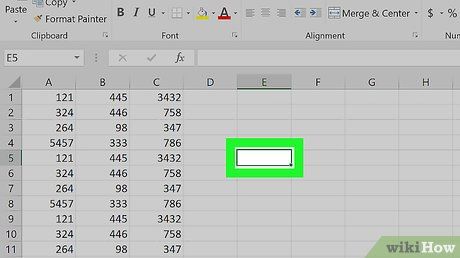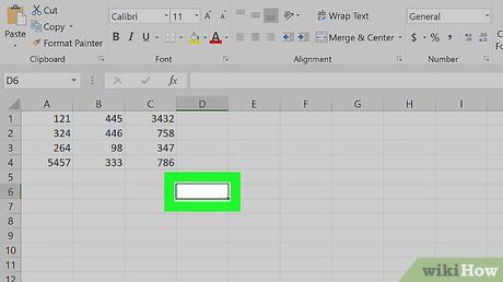 Chọn ô để sử dụng công thức nâng cao. Đối với công thức phức tạp hơn, chúng ta sẽ sử dụng công cụ Chèn Hàm. Bắt đầu bằng cách nhấp vào ô bạn muốn hiển thị công thức.