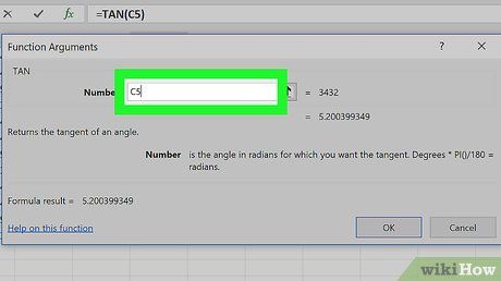 - Ví dụ, khi chọn hàm TAN, nhập độ lớn của góc bạn muốn tìm tang.