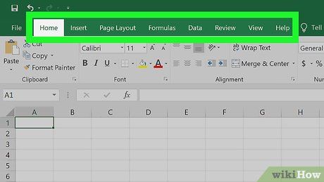 Khám phá thẻ ruy-băng trong Excel. Ruy-băng màu xanh lá ở đầu cửa sổ Excel chứa nhiều thẻ quan trọng như: