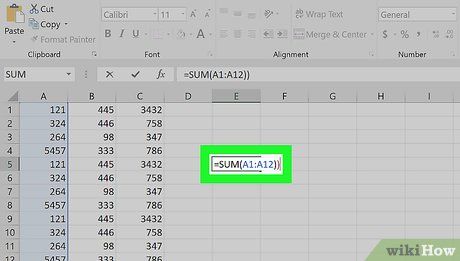 =SUM(A1:A12)) vào ô bạn muốn hiển thị kết quả.