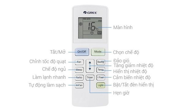 1. Tổng quan về các chức năng trên remote điều khiển máy lạnh Gree