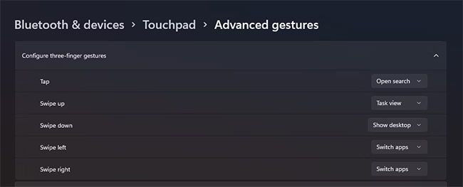 Cử chỉ 3 ngón tay: Những cử chỉ này trên bàn di chuột cho phép tùy chỉnh trên Windows 11 để thực hiện các hành động như nhấn hoặc vuốt trên máy tính.