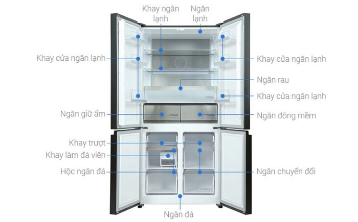 - Ngăn tủ lạnh: Đặt các thực phẩm vào các khay và ngăn đựng hoặc túi đựng, sắp xếp chúng ngăn nắp để giữ nhiệt độ đồng đều.