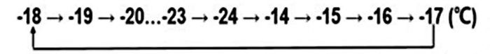 + Thay đổi nhiệt độ ngăn đông: Khi liên tục nhấn nút “TEMP”, nhiệt độ sẽ được cài đặt theo thứ tự như sau: