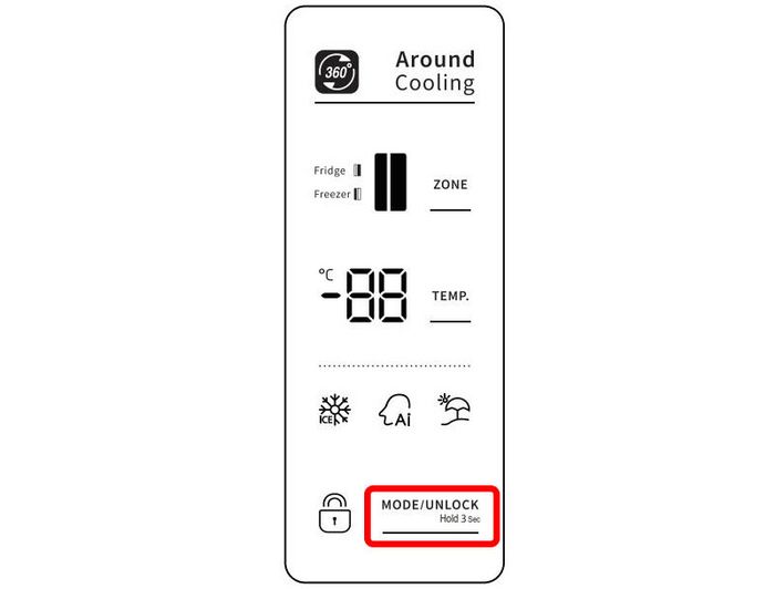 Khi tất cả nút ấn đều bị khóa, biểu tượng khóa sáng. Để mở khóa, nhấn nút “MODE/UNLOCK” trong vòng 3 giây.