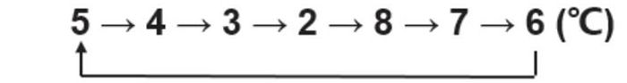 + Điều chỉnh nhiệt độ ngăn mát: Khi liên tục nhấn nút “TEMP”, nhiệt độ sẽ được cài đặt theo thứ tự như sau: