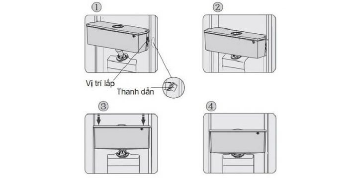 - Sau khi vệ sinh xong, thực hiện lắp khay nước lại theo các bước sau đây: