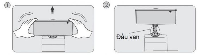+ Bước 2: Xoay nhẹ phần van để làm sạch đầu van, nắp khay và bên trong khay chứa nước.