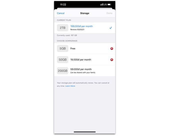 Mặc định, Apple chỉ cung cấp miễn phí 5GB iCloud. Điều này có thể dẫn đến việc không đồng bộ hóa hình ảnh & video trong Thư viện. Hãy thử nâng cấp lên gói 50GB với giá chỉ 19k/tháng.