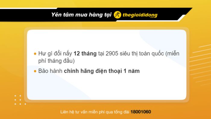 - Bảo hành chính hãng điện thoại 1 năm.