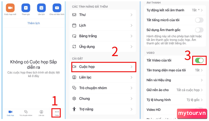 Bước 2: Chọn Cuộc họp > Di chuyển thanh trượt về bên phải ở mục Tắt Video của tôi để tắt camera trên ứng dụng Zoom. Nếu muốn bật camera, hãy di chuyển thanh trượt về lại bên trái.