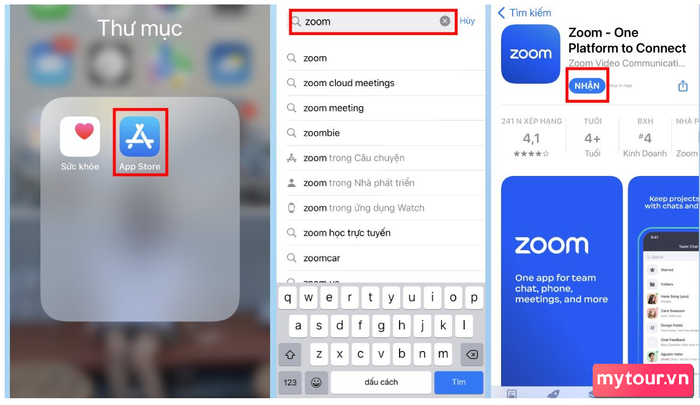 Tương tự như trên hệ điều hành Android, trước hết bạn cần cài đặt và thiết lập ứng dụng trên điện thoại iPhone để sử dụng đầy đủ tính năng của nó. Bạn chỉ cần thực hiện 3 bước sau để tải Zoom nhanh chóng: