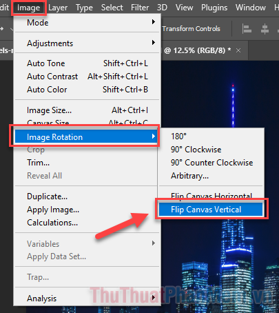 Chọn Ảnh >> Xoay ảnh >> Lật dọc Canvas.
