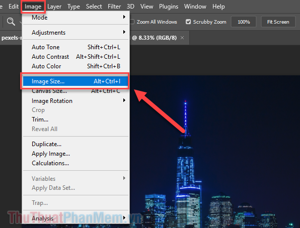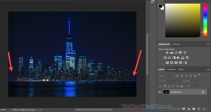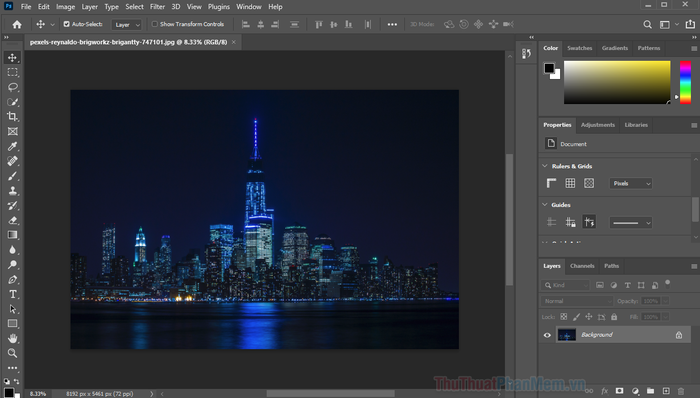 Để minh họa, Mytour sử dụng hình ảnh thành phố ban đêm. Trước khi bắt đầu, hãy mở ảnh trong Photoshop.