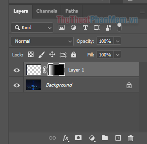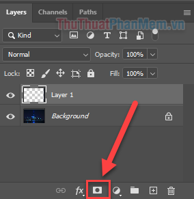 - Thêm một mặt nạ cho Layer 1 bằng cách nhấn vào biểu tượng hình tròn trong hình vuông trong cửa sổ Layer.