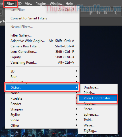 Bước 7: Sử dụng bộ lọc Polar Coordinates