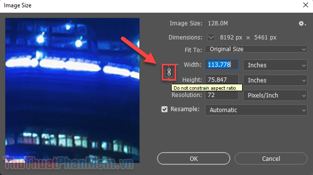 - Bấm vào biểu tượng Không giữ tỷ lệ khía cạnh để hủy liên kết giữa chiều dài và chiều rộng của ảnh.