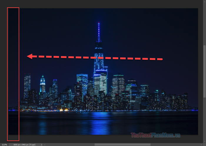 Làm cho hai mép của bức ảnh trở nên giống nhau không phải là bước bắt buộc, nhưng nó sẽ giúp bạn tiết kiệm thời gian khi chỉnh sửa sau này. Trong bức ảnh này, tôi sẽ loại bỏ một số tòa nhà và điều chỉnh sự chuyển động trên bầu trời.