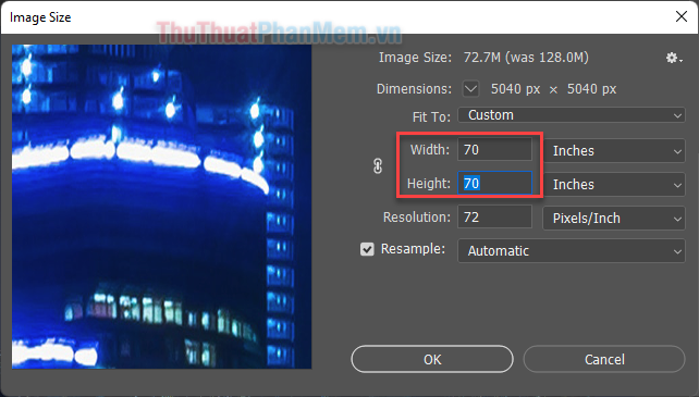 - Nhập kích thước chiều dài và chiều rộng mới sao cho chúng bằng nhau. Bạn nên nhập số nhỏ hơn cho cả hai chiều này.