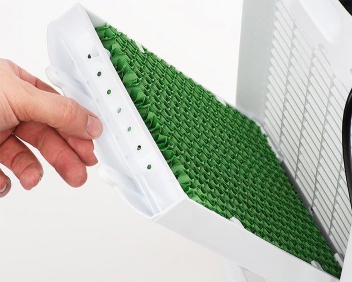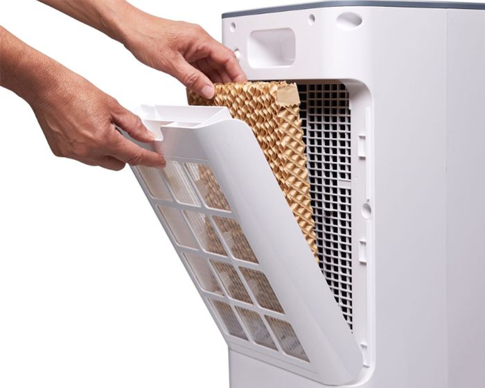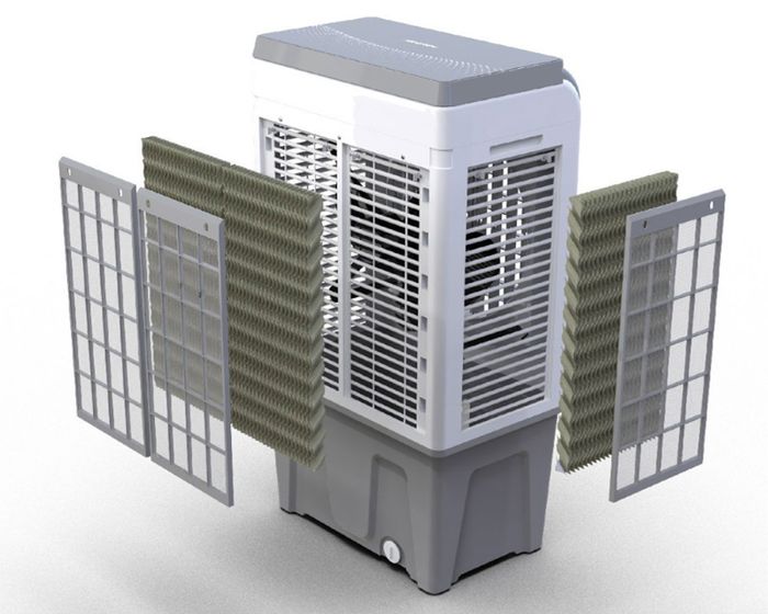 Tấm làm mát là bộ phận quan trọng giúp trao đổi nhiệt trong quạt điều hòa. Khi không khí bên ngoài đi qua tấm làm mát, nhiệt độ của không khí sẽ giảm nhờ quá trình trao đổi nhiệt và kết hợp với hơi nước để tạo ra không khí mát, giúp không gian phòng luôn dễ chịu và thông thoáng. Để quạt điều hòa hoạt động hiệu quả, người dùng nên làm sạch tấm làm mát ít nhất mỗi tháng một lần.