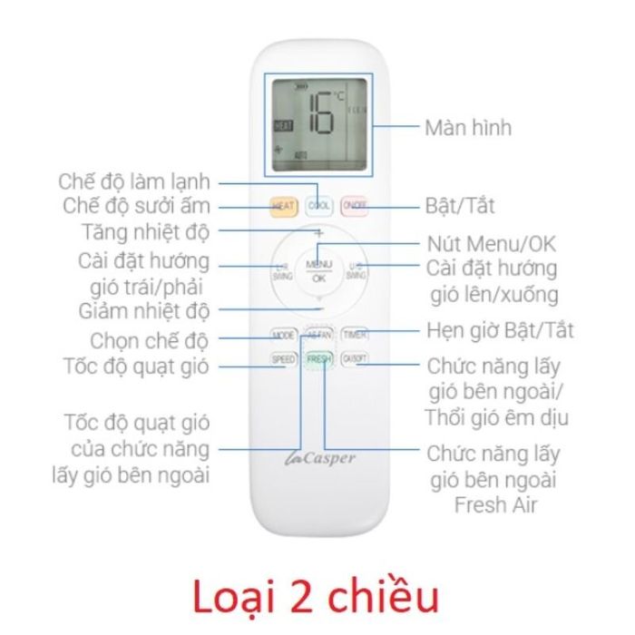 1.2. Chức năng các nút trên điều khiển máy lạnh Casper 2 chiều