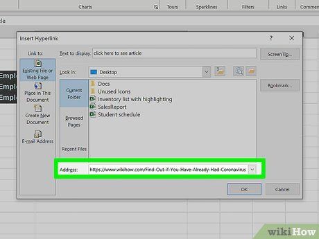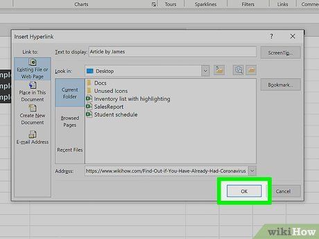 Nhấn 'OK' để tạo liên kết. Liên kết sẽ xuất hiện trong ô bạn đã chọn. Khi nhấp vào ô đó, tệp hoặc thư mục bạn đã chỉ định sẽ được mở.