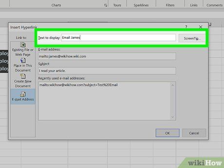 Đổi tiêu đề sẽ được hiển thị (tùy chọn). Theo mặc định, liên kết sẽ hiển thị 'mailto:address@example.com' nhưng bạn có thể đổi thành bất kỳ nội dung nào mà bạn muốn, chẳng hạn như 'Liên hệ chúng tôi'. Hãy nhấp vào trường 'Text to display' và đổi nó thành nội dung tùy thích.