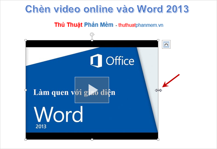 Video đã được chèn vào Word. Để điều chỉnh kích thước, di chuyển và xoay video, chọn video và sử dụng các góc và cạnh theo ý muốn.