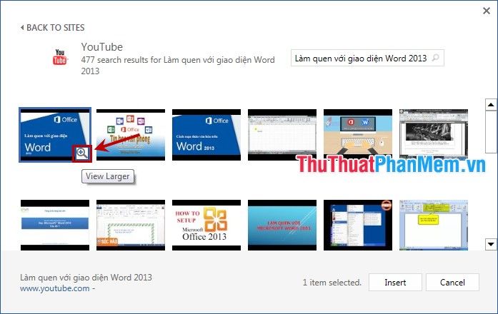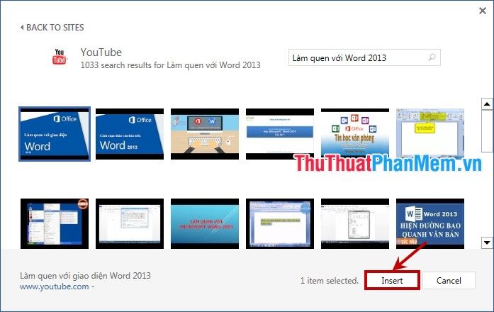 Bước 6: Sau khi đã xem và chọn đúng video cần chèn, nhấn Insert để chèn video vào Word.