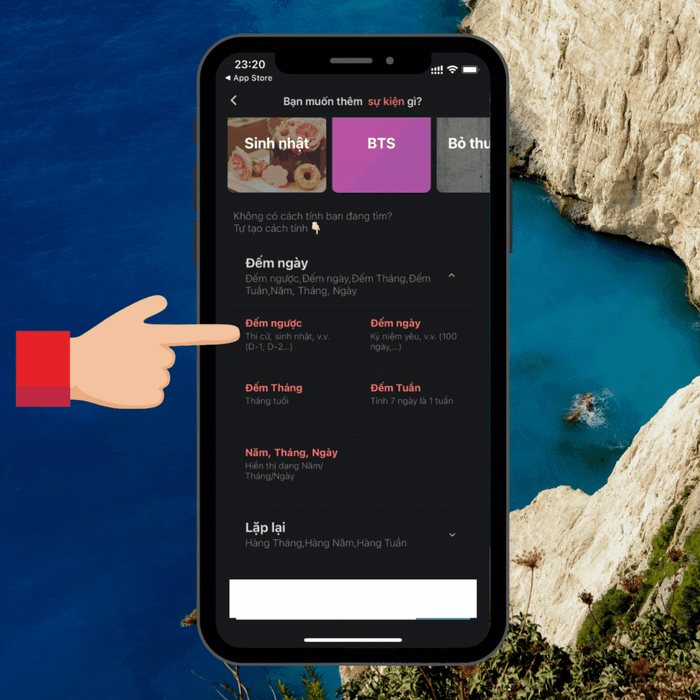 Bước 2: Chọn thêm sự kiện đếm ngày