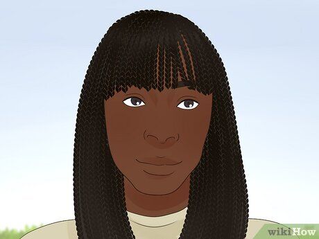 Tóc Mái Tết Nếu bạn yêu thích tóc tết, hãy thay đổi phong cách với tóc mái tết. Ví dụ, nếu bạn để tóc bím kiểu cornrow hay bím hộp, hãy tết ngắn phần mái và thêm phụ kiện như hạt để tạo điểm nhấn cho mái tóc.