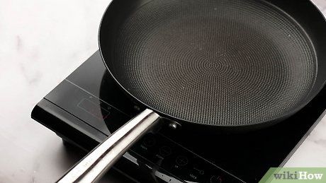 Đun chảo trên lửa vừa trong 3 phút. Nếu bạn không chắc chảo có thể sử dụng trong lò nướng không, tốt nhất là tôi dầu trên bếp. Bắt đầu bằng cách đun chảo sạch và khô trên lửa vừa trong 3 phút.