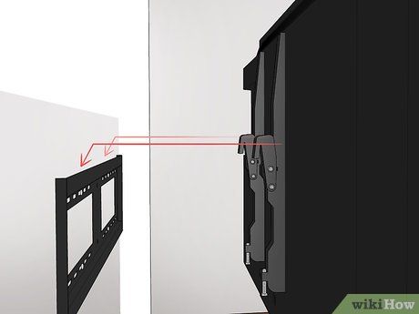 - Nếu cần, nhờ người khác giúp bạn nâng TV lên hoặc quan sát từ phía sau để gắn khung treo vào đúng vị trí.