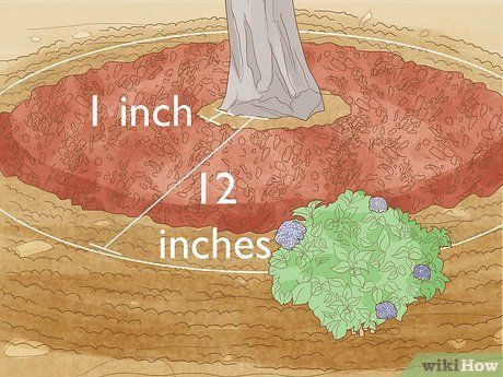 Giữ khoảng cách an toàn giữa gốc cây và lớp phủ đất. Đảm bảo rằng gốc cây được thoải mái và không bị che lấp bởi lớp phủ đất, giữ khoảng cách an toàn để rễ cây có đủ không khí và nước.