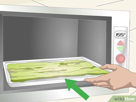 Khô bơ trong lò nướng. Để bơ khô trong lò khoảng 5 tiếng. Kiểm tra đều mỗi tiếng để tránh bơ bị cháy. Bơ cần có màu xanh sang nâu đậm; nếu chuyển sang màu đen, hãy lấy ra khỏi lò.