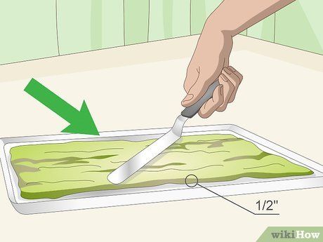 Phết bơ lên khay nướng. Múc bơ xay vào khay nướng, sau đó sử dụng phới để phết thành một lớp mỏng. Cố gắng tạo ra lớp bơ dày khoảng 1,3 cm.
