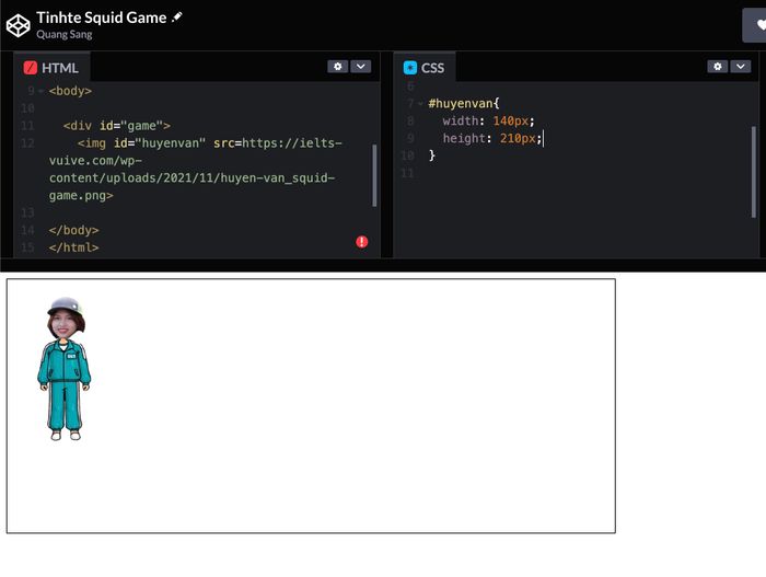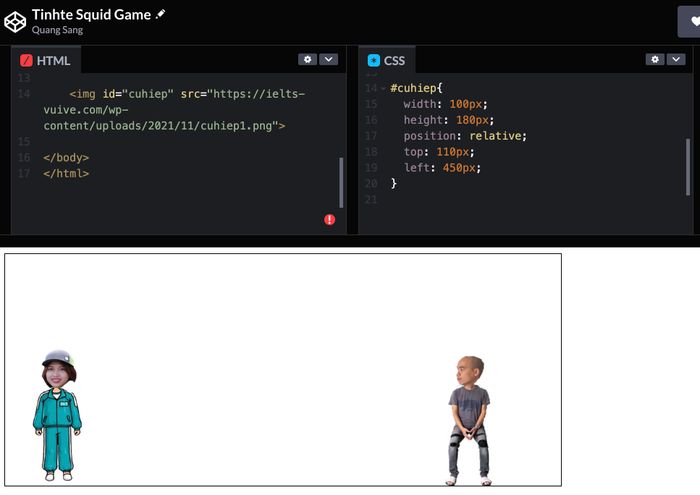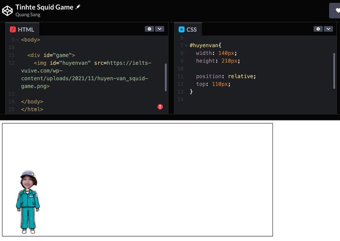 Thêm thuộc tính position để cố định vị trí của Huyền Vân và top để di chuyển Huyền Vân theo chiều dọc → Ok, Huyền Vân đã chạm đất.