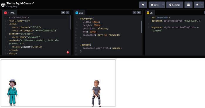 Giờ, để huyenvan đứng yên, mình thêm thuộc tính .paused vào. Sau khi F5 lại trang, bạn sẽ thấy kết quả.