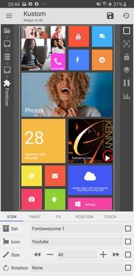 - Chọn Stack Group Youtube, sau đó chọn Overlap Group (youtube), tiếp theo chọn Fonticon để lựa chọn các biểu tượng. Chuyển sang tab PAINT để thay đổi màu sắc icon, tab TOUCH để chỉnh sửa hành động khi chạm vào.